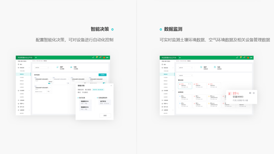 2020年公司專注于智慧農(nóng)業(yè)關鍵技術研發(fā),積極探索重慶智慧農(nóng)業(yè)發(fā)展新方向。先后服務酉陽、石柱、南川、北碚等區(qū)域客戶智慧農(nóng)業(yè)云平臺建設,受到業(yè)主一致好評。公司始終堅持“產(chǎn)品+數(shù)據(jù)+技術+服務”的發(fā)展模式,致力于智慧農(nóng)業(yè)整體解決方案研發(fā)和服務。通過數(shù)據(jù)和技術雙輪驅(qū)動,實現(xiàn)農(nóng)業(yè)規(guī)模化、精準化、智能化。